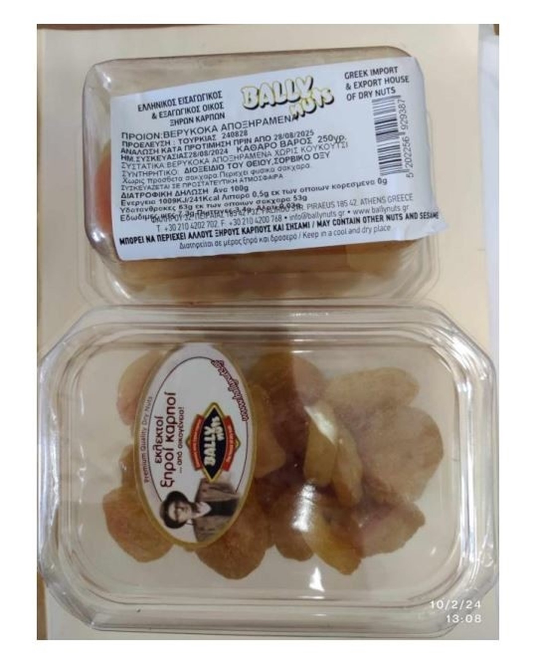 O Ενιαίος Φορέας Ελέγχου Τροφίμων (ΕΦΕΤ) και ειδικότερα η Περιφερειακή Δ/νση Ανατολικής Μακεδονίας & Θράκης, κατά τη διενέργεια ελέγχων, προέβη σε δειγματοληψία τροφίμου με στοιχεία "Εκλεκτοί ξηροί καρποί BALLY NUTS ΒΕΡΥΚΟΚΑ ΑΠΟΞΗΡΑΜΕΝΑ ΠΡΟΕΛΕΥΣΗ: ΤΟΥΡΚΙΑΣ" σε πλαστική κλειστή συσκευασία 250 γρ., με ημερομηνία συσκευασίας 28/08/2024 και ανάλωση κατά προτίμηση πριν από: 28/08/2025, που συσκευάζεται από την επιχείρηση, BALLY NUTS Κ.Μ. ΜΠΑΛΑΜΟΥΤΣΟΣ Ι.Κ.Ε., με έδρα Φαλήρου 32, ΤΚ 185 42, στον Πειραιά.
