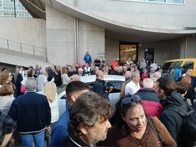 Μετά τις 18:00, ο κόσμος πλέον δεν χωρούσε εντός του προαυλίου και βγήκε στον δρόμο, μπροστά από τα γραφεία, που έκλεισε.