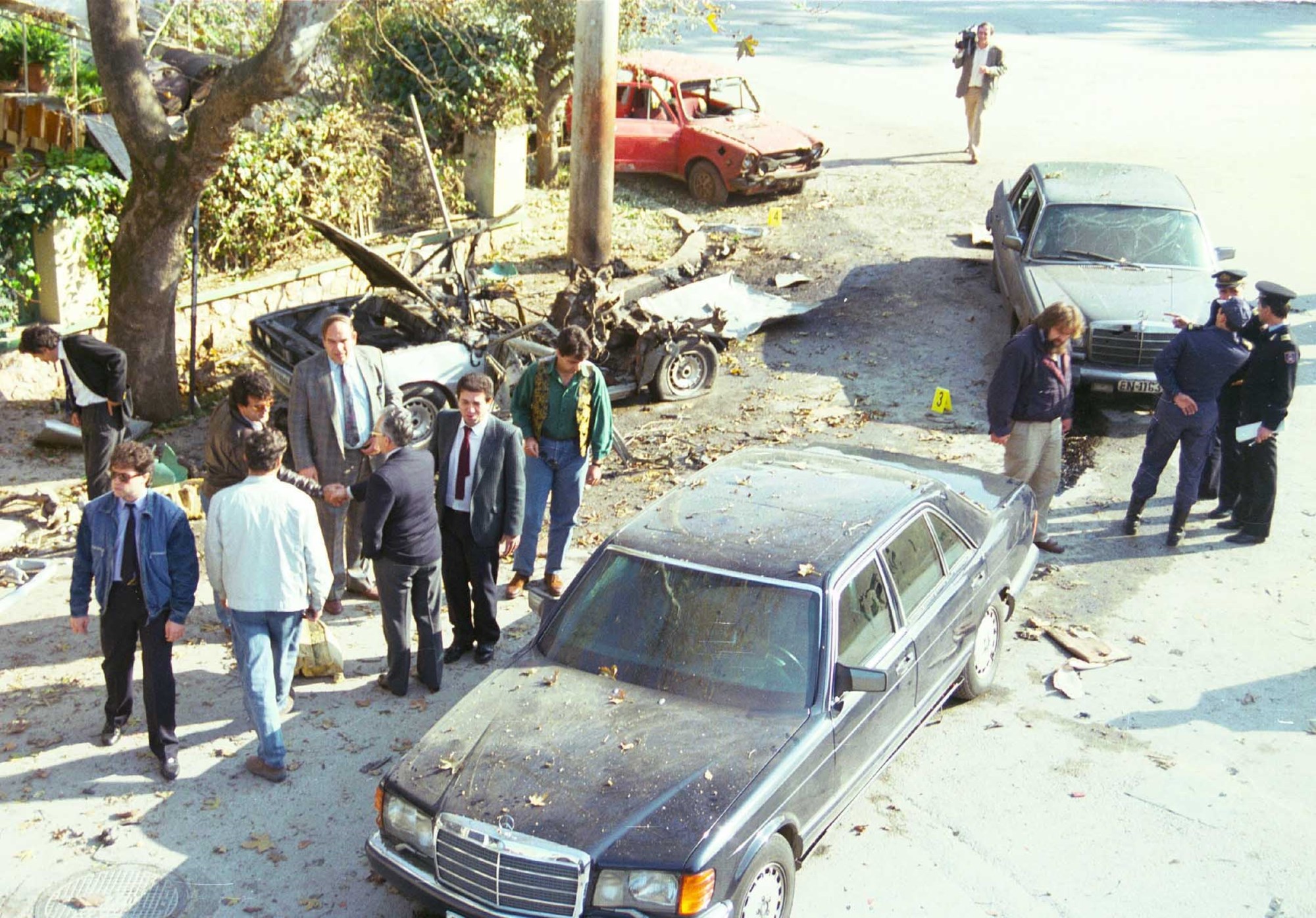 Χωρίς να πει κουβέντα, ο Βαρδής Βαρδινογιάννης μπαίνει στη θέση του συνοδηγού και εξαφανίζεται με κατεύθυνση προς το κέντρο της Αθήνας. Ο επιχειρηματίας φαίνεται ότι είχε δώσει βάση στις απειλές της 17 Νοέμβρη ότι "το καλό πράγμα αργεί να γίνει" και είχε λάβει τα μέτρα του, σχεδιάζοντας τις Mercedes με τις οποίες κυκλοφορούσε με βάση τις προδιαγραφές που είχε λάβει από τις αντιτρομοκρατικές υπηρεσίες της Γαλλίας και της Αγγλίας.