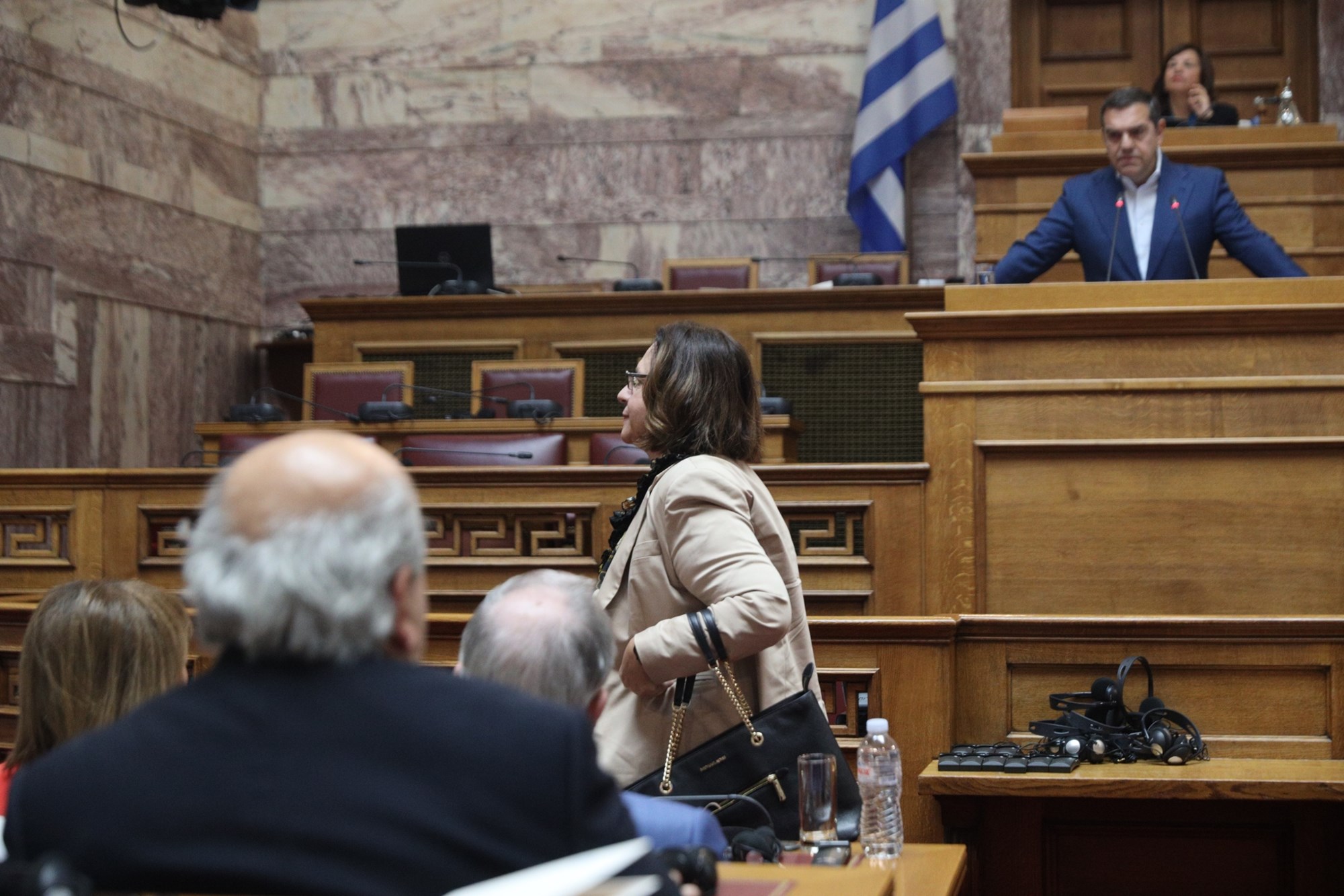 Ο Αλέξης Τσίπρας ενοχλήθηκε από την αποχώρηση της κ. Αδειλίνη, σχολιάζοντας ειρωνικά: "Τουλάχιστον να κάθεται και να ακούει".