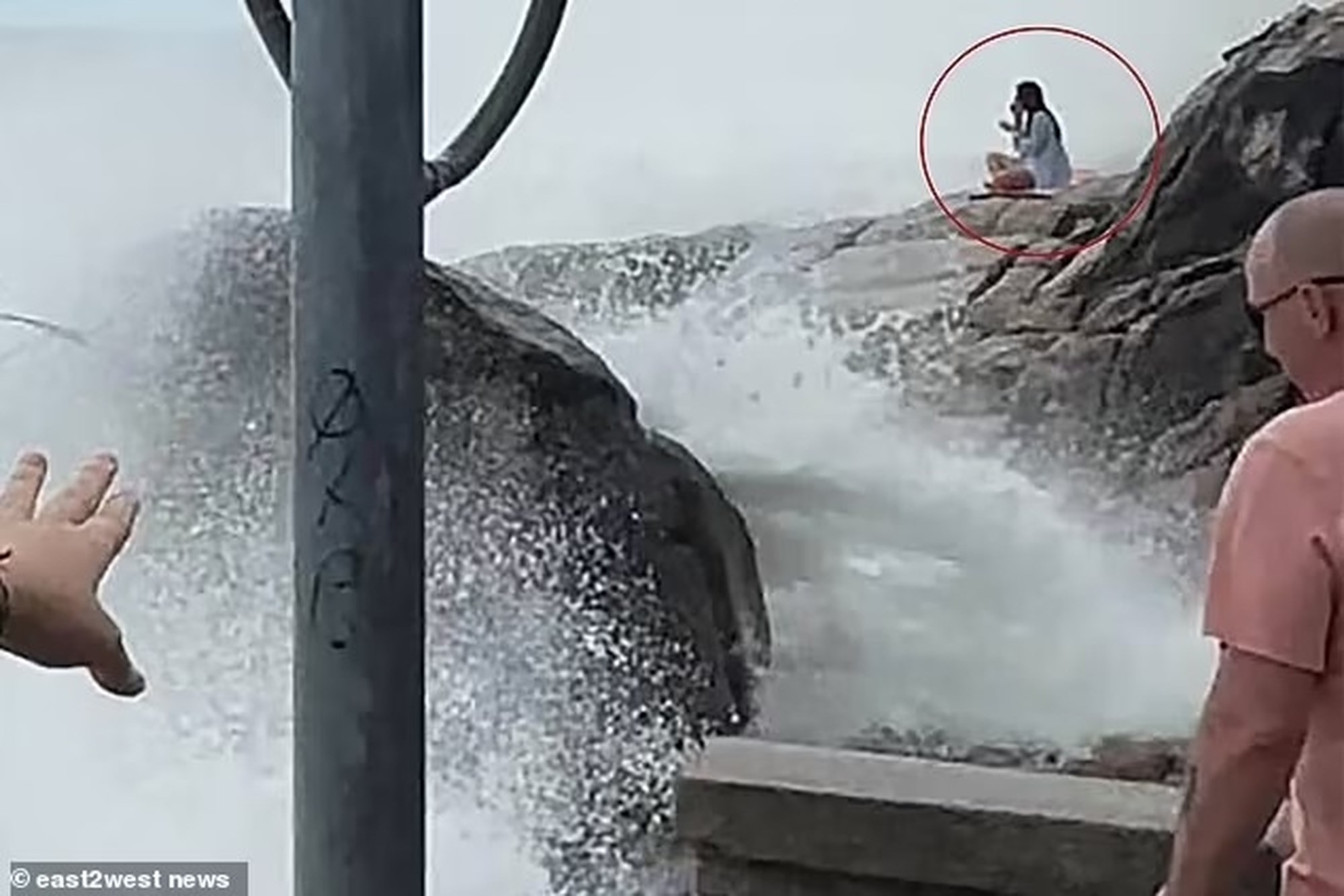 Η κοπέλα χτυπήθηκε από το τεράστιο κύμα το οποίο την παρέσυρε μέσα στη θάλασσα. Πίσω της έμεινε μόνο το ροζ χαλάκι που χρησιμοποιούσε για να κάνει γιόγκα.