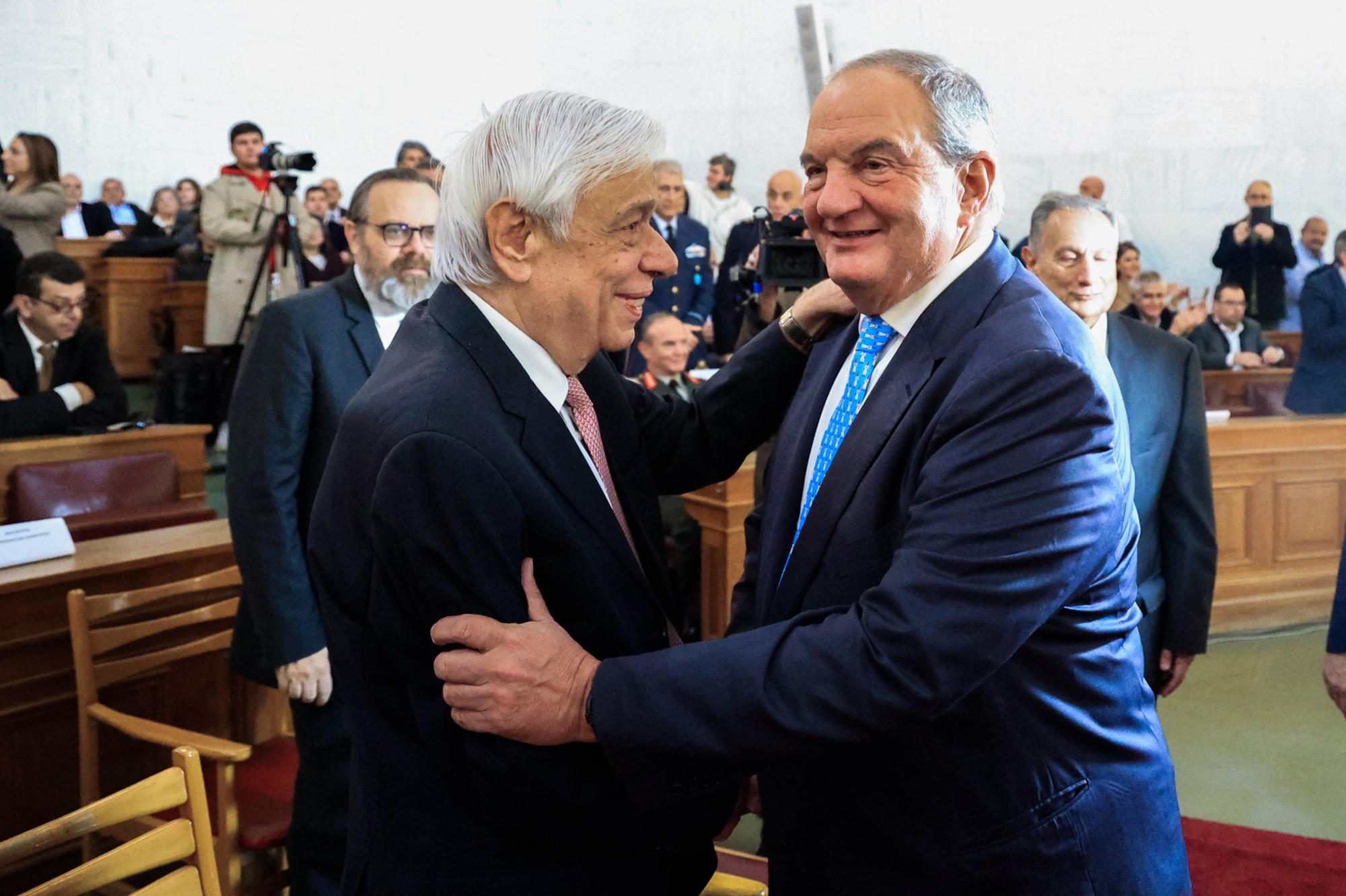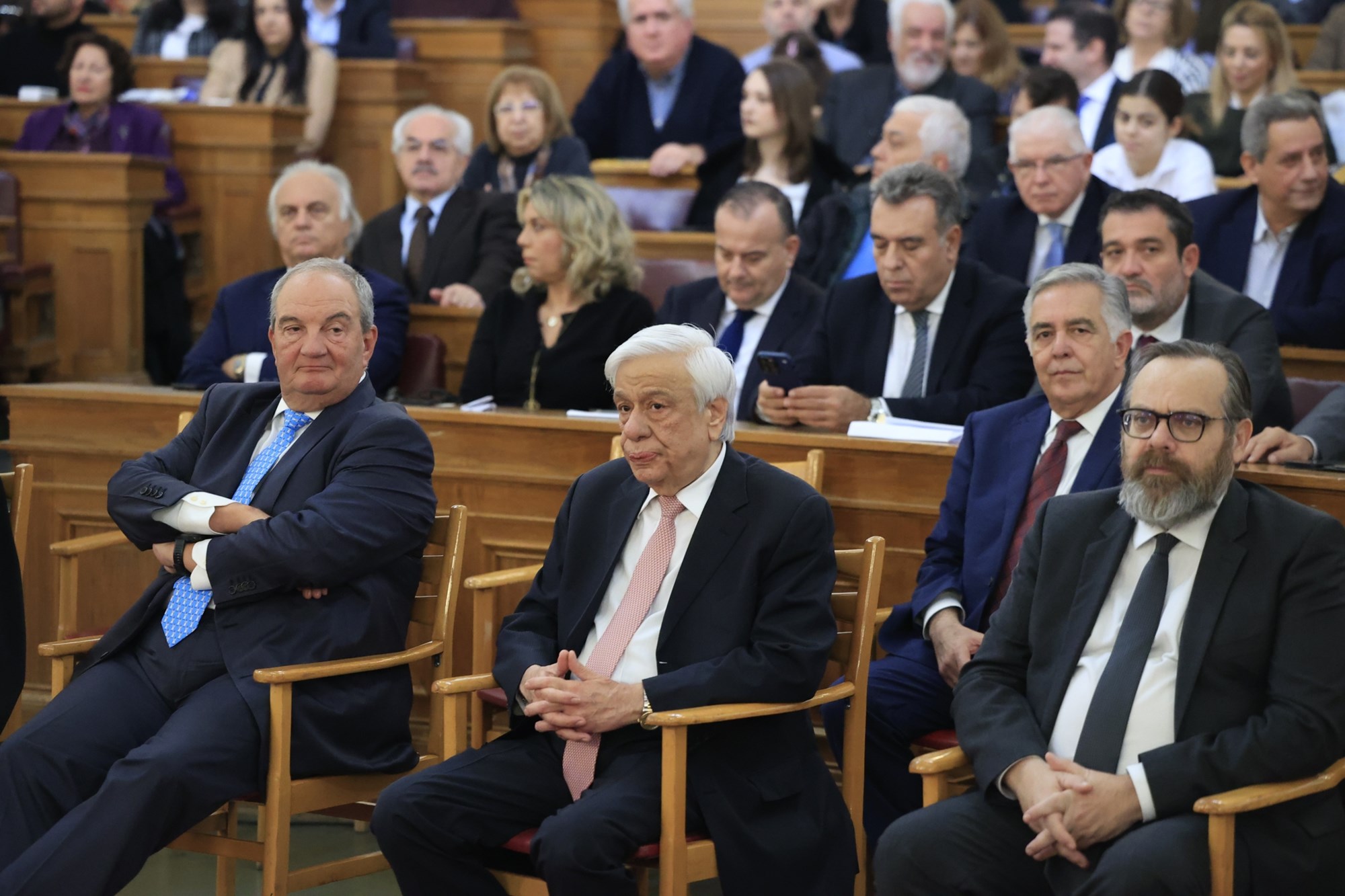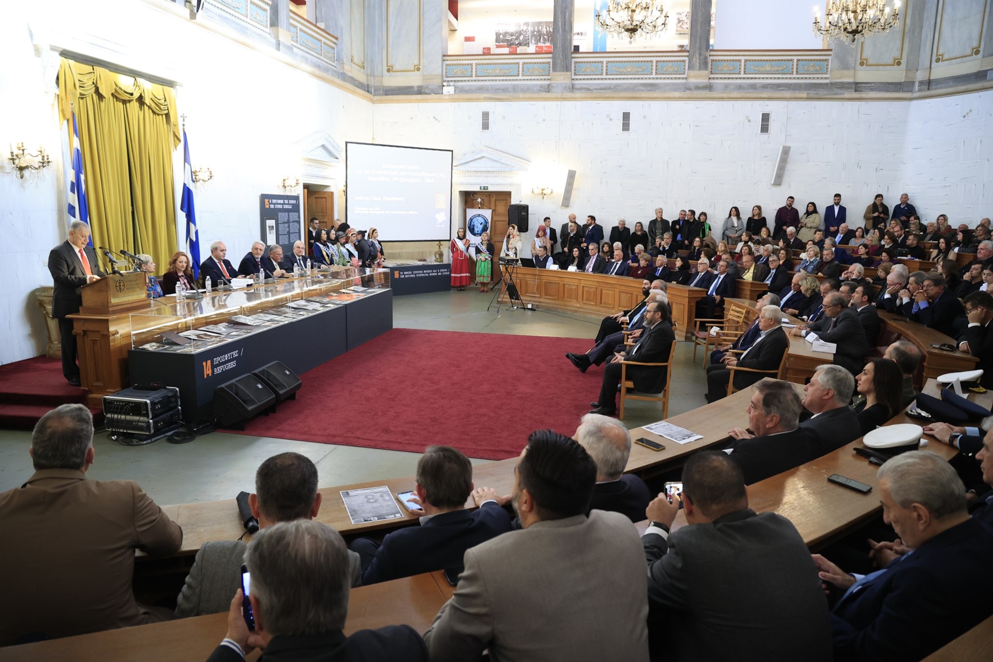 Ο κ. Καραμανλής στις πρώτες του κουβέντες δήλωσε συγκινημένος "για να τιμήσουμε μια μέρα πλήρη συμβολισμών και μηνυμάτων".