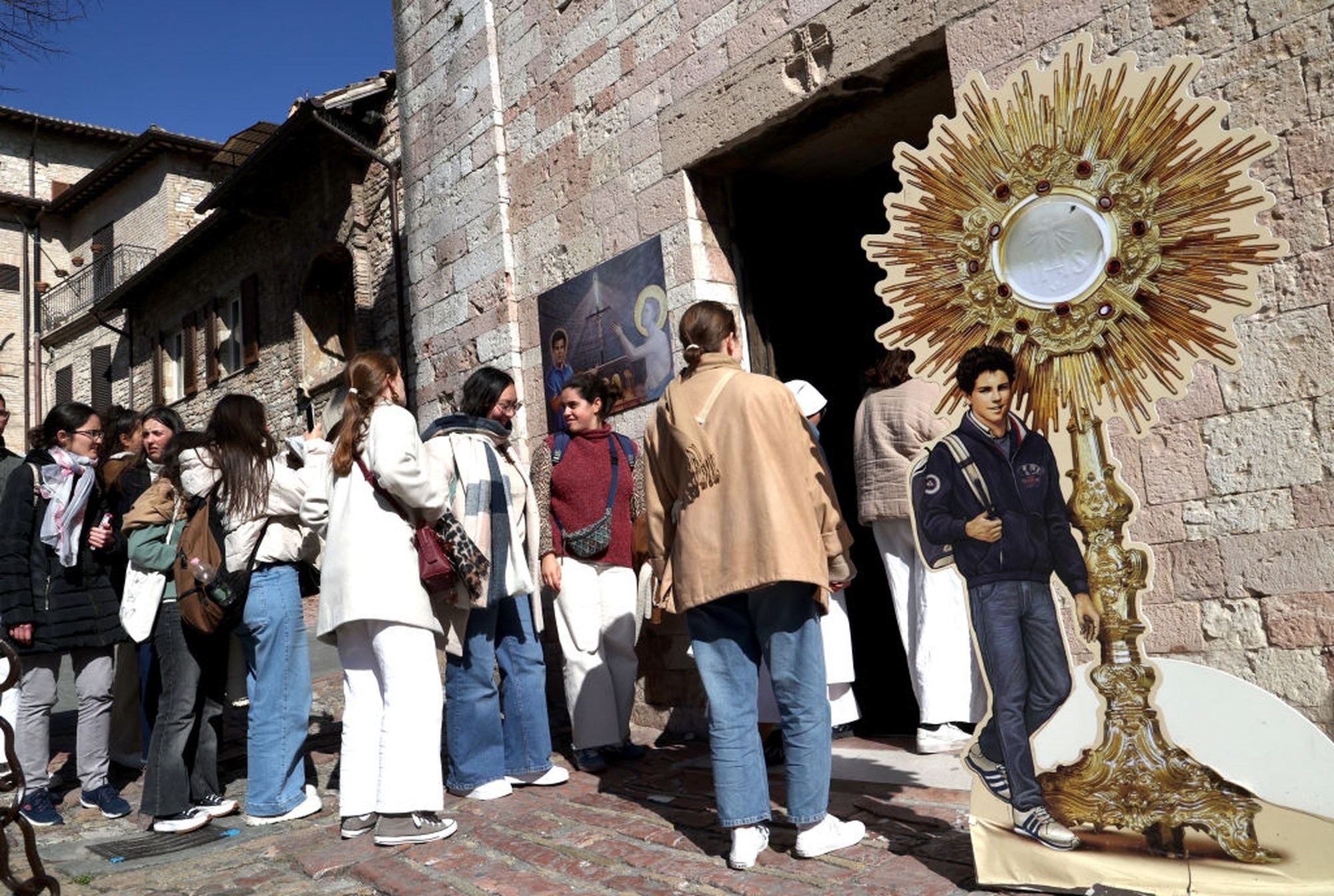 Οι πιστοί καταφθάνουν για το προσκύνημά τους στη Βασιλική της Σάντα Μαρία Ματζόρε στην Ασίζη για να προσευχηθούν και να δουν από κοντά τον 15χρονο "Influencer του Θεού".