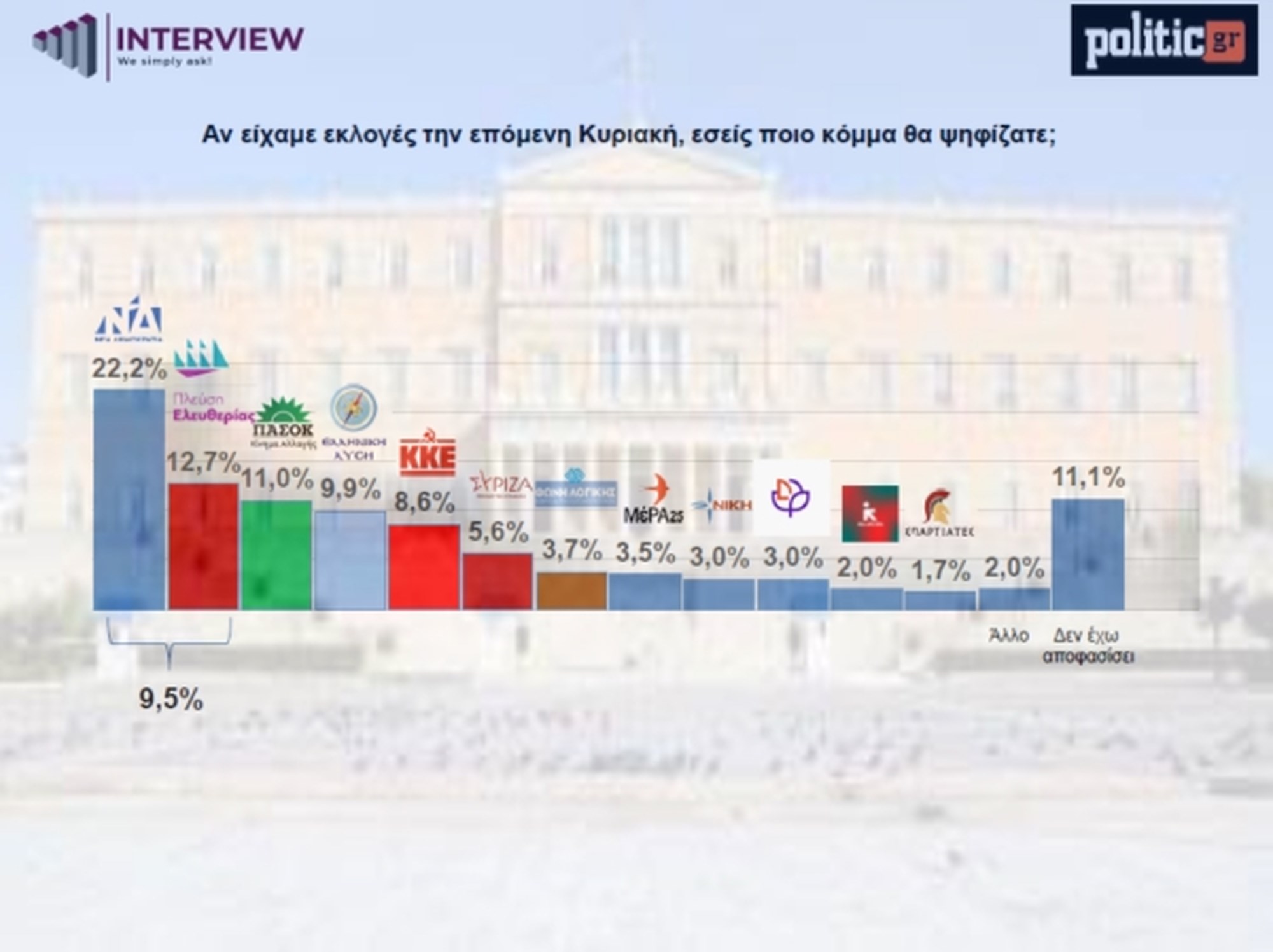 Το ποσοστό των αναποφάσιστων ψηφοφόρων ανεβαίνει στο 11,1%.