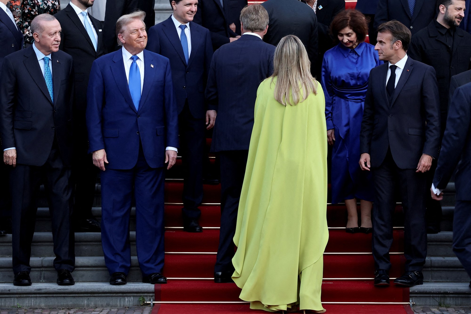Στη συνέχεια οι ηγέτες του ΝΑΤΟ συγκεντρώθηκαν για την επίσημη οικογενειακή φωτογραφία προτού δειπνήσουν με το βασιλικό ζεύγος στην αίθουσα Oranjezaal στο παλάτι.