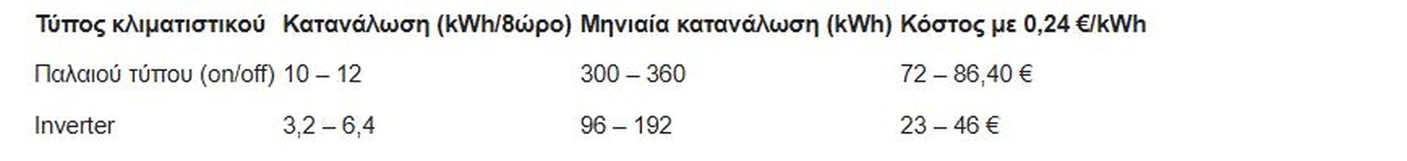 Τα στοιχεία αυτά αποδεικνύουν ότι ακόμη και ένα μικρό κλιματιστικό –εφόσον είναι παλαιού τύπου και λειτουργεί καθημερινά– μπορεί να οδηγήσει σε λογαριασμό που θα ξεπερνά τα 60 ευρώ τον μήνα. Το κόστος αυτό αυξάνεται ακόμα περισσότερο εάν υπάρχουν περισσότερες από μία συσκευές στο σπίτι ή εάν η κατανάλωση ενέργειας περνά το όριο που θέτει το πράσινο τιμολόγιο για τις χαμηλές χρεώσεις.