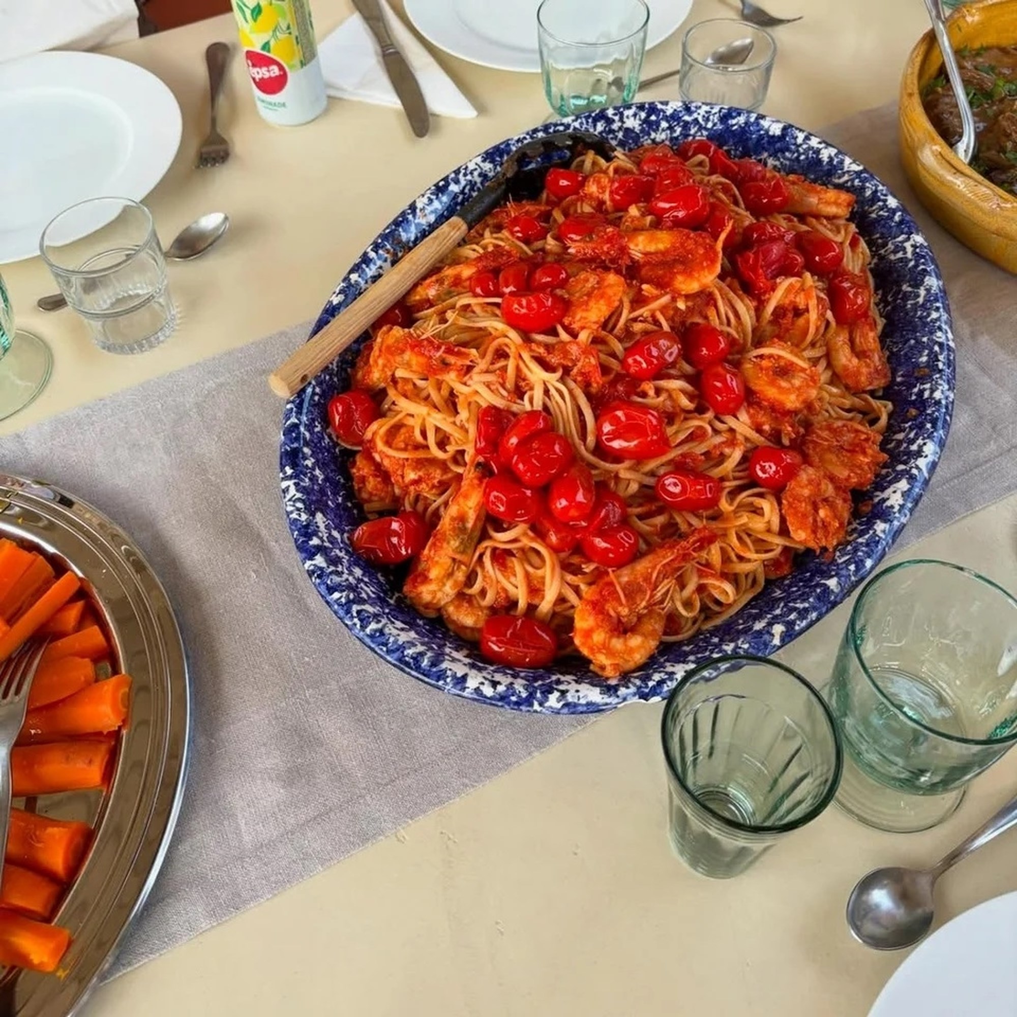 Οι ανιψιές της συνεχίζουν να καταγράφουν τις εμπειρίες τους στην Ελλάδα, ανεβάζοντας φωτογραφίες από παραδοσιακά πιάτα – όπως γαριδομακαρονάδα με ντοματίνια, φρέσκα ψάρια, πατάτες, χωριάτικη σαλάτα και ελιές – αλλά και από βόλτες στις παραλίες και τις γαλάζιες σπηλιές των Παξών και Αντίπαξων.