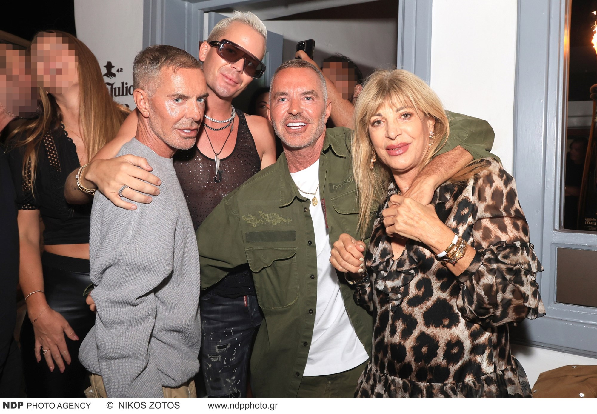Για τη βραδινή τους βόλτα στα σοκάκα, η Αριανα Ροκφέλερ επέλεξε ένα μακρύ φόρεμα σε καφέ απόχρωση, ενώ ο Τζακ Μόργκαν τζιν και ημιδιάφανο τοπ με λάμψεις.