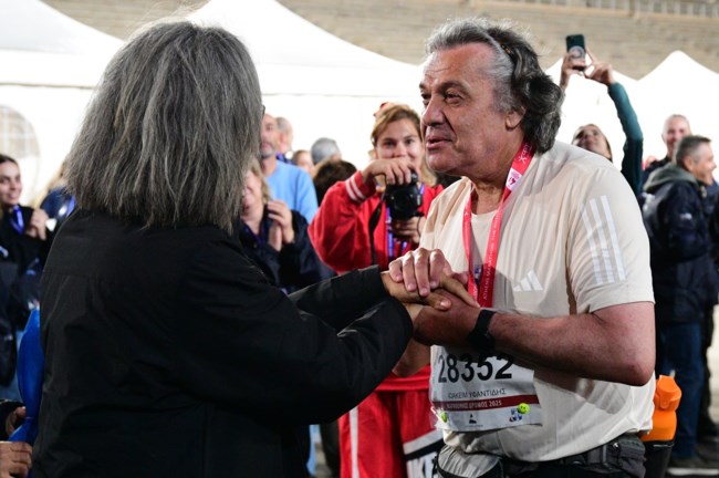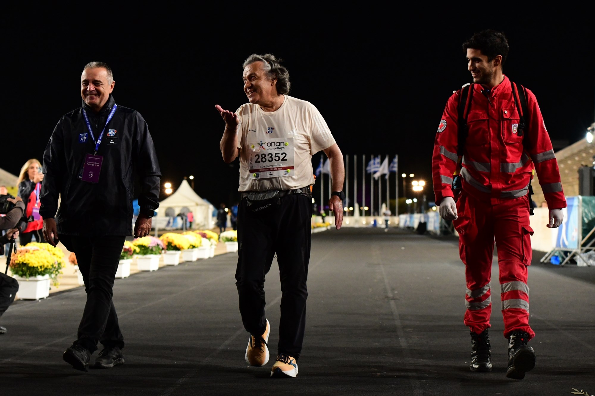 Η πρόεδρος του ΣΕΓΑΣ, Σοφία Σακοράφα, του απένειμε μετάλλιο και το ειδικό βραβείο που παραδοσιακά δίνεται στον δρομέα που τερματίζει τελευταίος στον Μαραθώνιο.