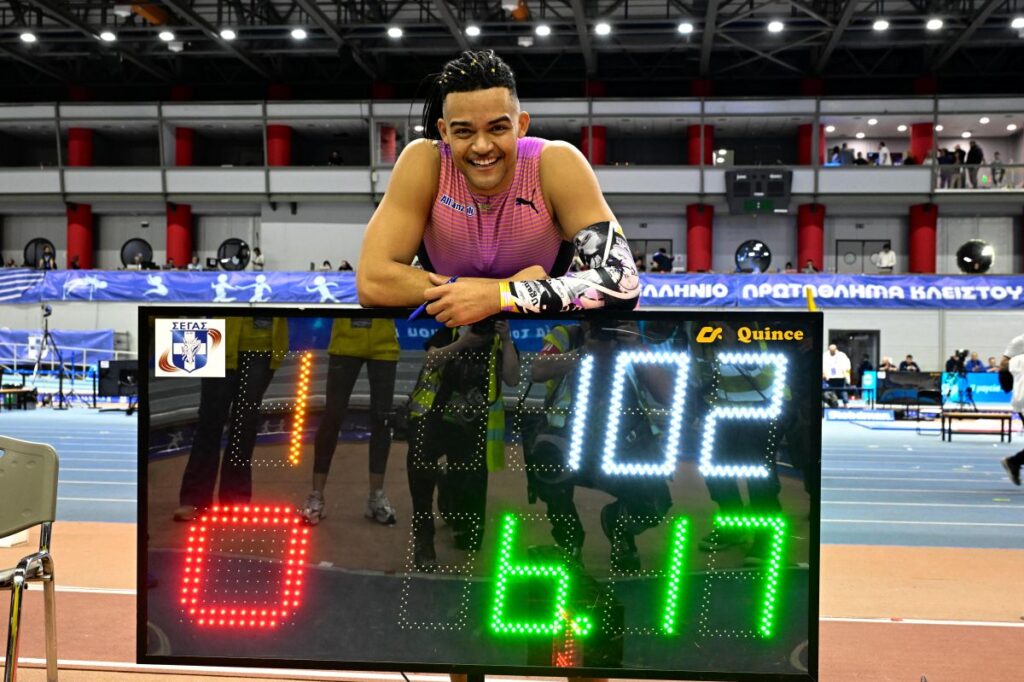 Σε ένα κατάμεστο κλειστό στάδιο στην Παιανία, ο χαρισματικός αθλητής έγραψε ιστορία ξεπερνώντας με χαρακτηριστική άνεση τα 6.17 – ναι τα 6.17!!! – μια επίδοση που τον έφερε στη δεύτερη θέση όλων των εποχών πάνω από τους τεράστιους Σεργκέι Μπούμπκα και Ρενό Λαβιλένι.