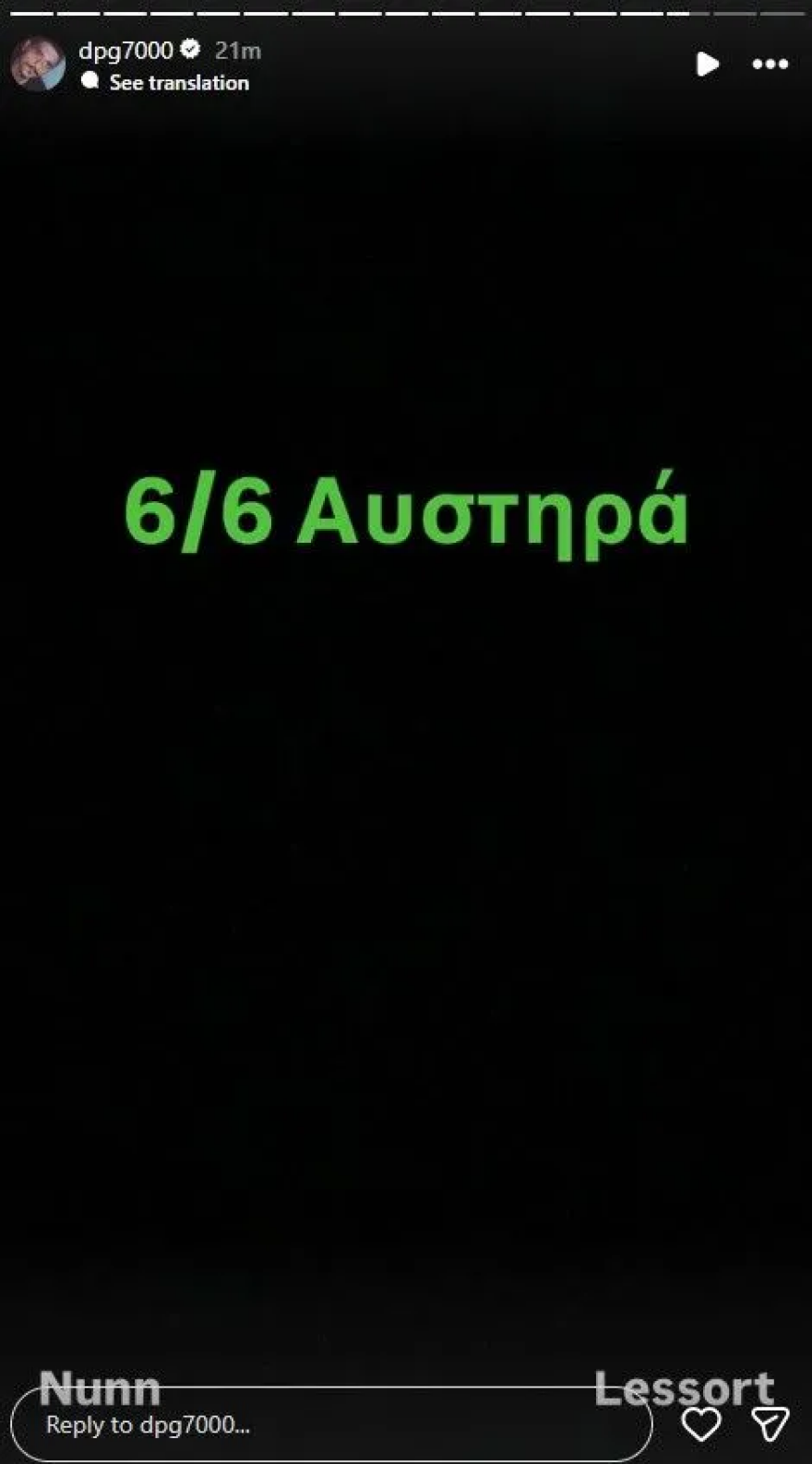Το «6/6 αυστηρά» και η αναφορά σε Ναν και ΛεσόρΠαράλληλα, ο Δημήτρης Γιαννακόπουλος ανάρτησε και άλλο story στο Instagram, στέλνοντας μήνυμα ενόψει της συνέχειας της σεζόν. «6/6 αυστηρά» έγραψε στα social media, θέτοντας ως στόχο τις έξι νίκες στα εναπομείναντα παιχνίδια.